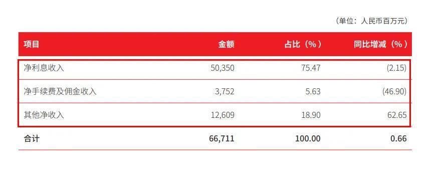 非利息淨收入中,其他淨收入為126.09億元,同比大幅增長62.65%。但手續費及佣金淨收入(也稱:中間收入)一項為37.52億元,同比大降46.90%。