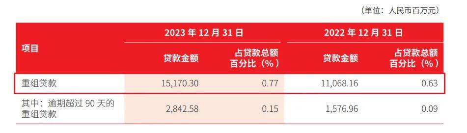此外,引人關注的是其不良貸款“一升一降”,重組貸款規模大幅攀升——2023年該行重組貸款餘額較2022年增長41.02億元。