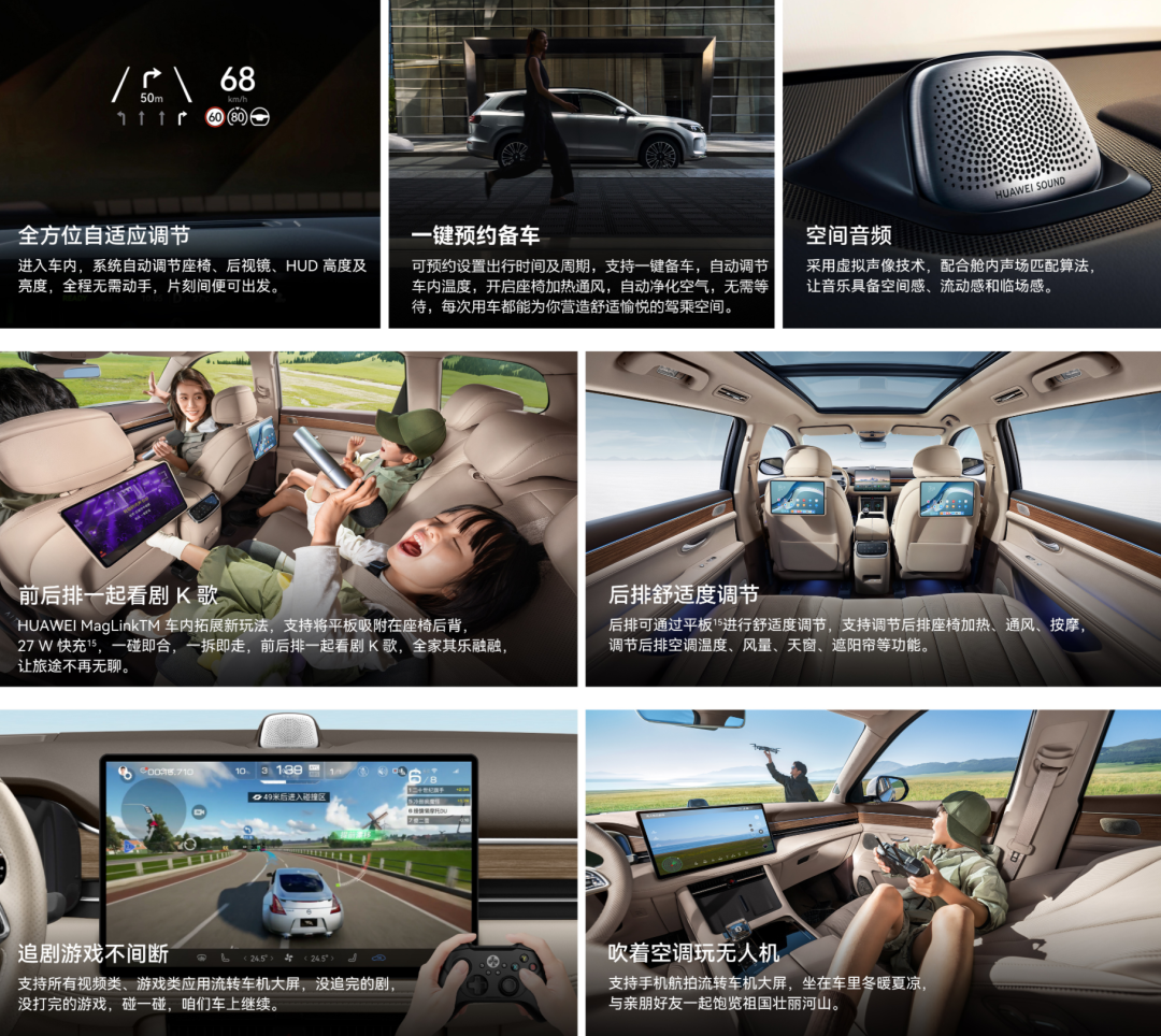 從配置上看,在幾乎完全一致的售價區間裏,問界 M7 ( 24.98-37.98 萬元 )在和華為有關的地方,比如車機系統、智能駕駛、屏幕拓展(也就是椅背上的 MagLink 插槽 )上,也保持了高度的一致。