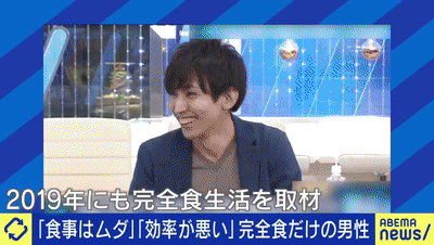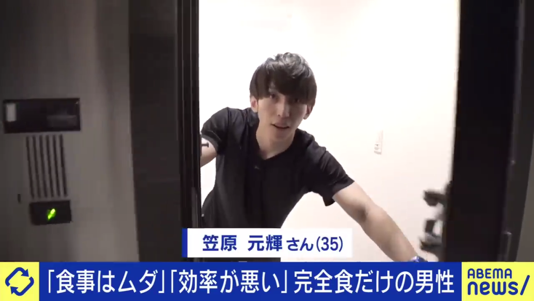 這位日常“不吃飯”哥今年35歲,畢業於東大,目前在東京都內的一家IT公司工作。對於吃飯這件事,笠原元輝有自己獨特的看法。