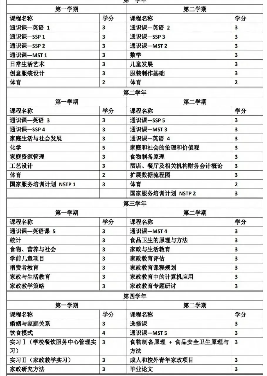 菲國內2000 多所大學幾乎都開設了家政課。菲律賓大學家政學院是全菲家政教育龍頭,設7個學士專業、6個碩士專業以及3個博士專業。
