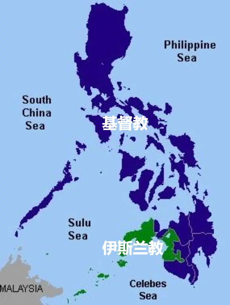 西班牙對傳播天主教熱情異常,在殖民者的政策引導和威逼利誘下,菲律賓中北部人口大都皈依天主教,而伊斯蘭教在菲律賓南部依舊穩固。