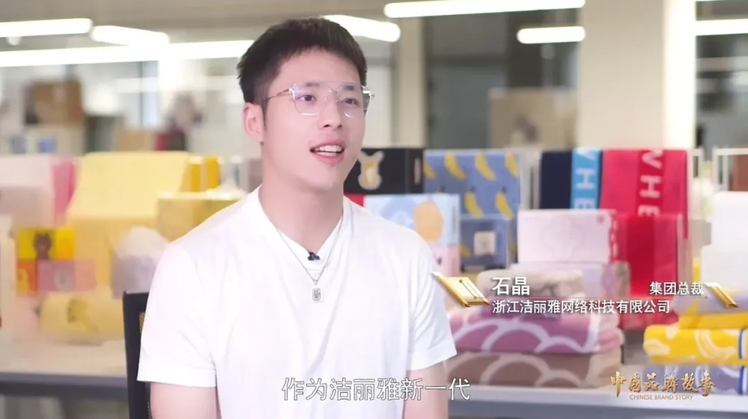 **這位“少爺”貨真價實,**他是老牌國貨毛巾品牌潔麗雅的企三代,大名石展承。