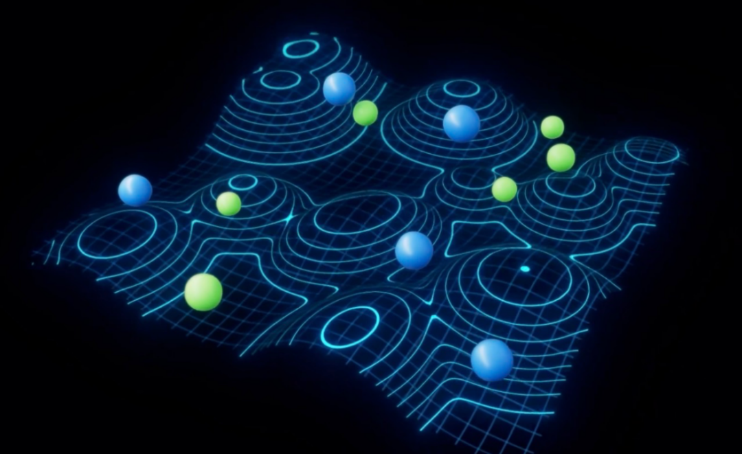 高度代表能量,原子會沿着曲面向低處落,全體原子就這樣運動。