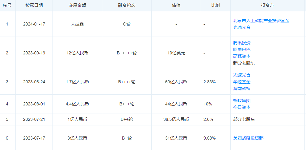 除百川智能估值超百億元外,目前月之暗面、MiniMax估值分別為超23億美元和超25億美元,智譜AI估值超百億元,這四家AI新創企業在資本助推下,正成為生成式AI時代的“新AI四小龍”。以智譜AI為例,2023年Q3一個季度中,智譜AI直接完成B5輪融資。