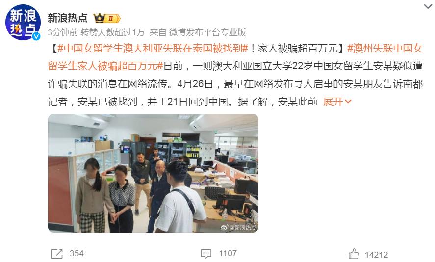 中國女留學生澳大利亞失聯,在泰國被找到!家人被騙超百萬元_風聞
