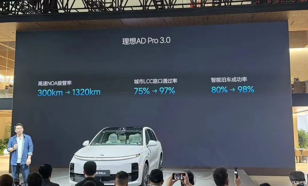 車展上,理想汽車發佈了多項智能化升級與用車體驗優化,其智能駕駛AD Pro 3.0預計將於5月初隨OTA 5.2推送,並實現千公里接管級別的高速NOA、同時支持紅綠燈路口起停的城市LCC、複雜車位的智能泊車。