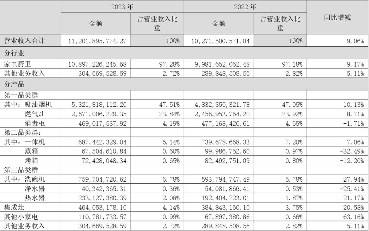 第一品類指以煙機為代表的煙灶消產品羣,收入佔比超7成。