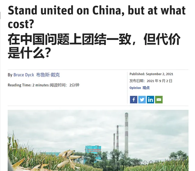 2021年9月,加拿大《西部生產者》,《(西方)在中國問題上團結一致了,但代價是什麼?》(Stand united on China, but at what cost?)這篇是我在出本期內容收集資料的過程中找到的為數不多的極個別幾個,用“但代價是什麼”體擬標題時將西方而非中國錨定為主體的報道。