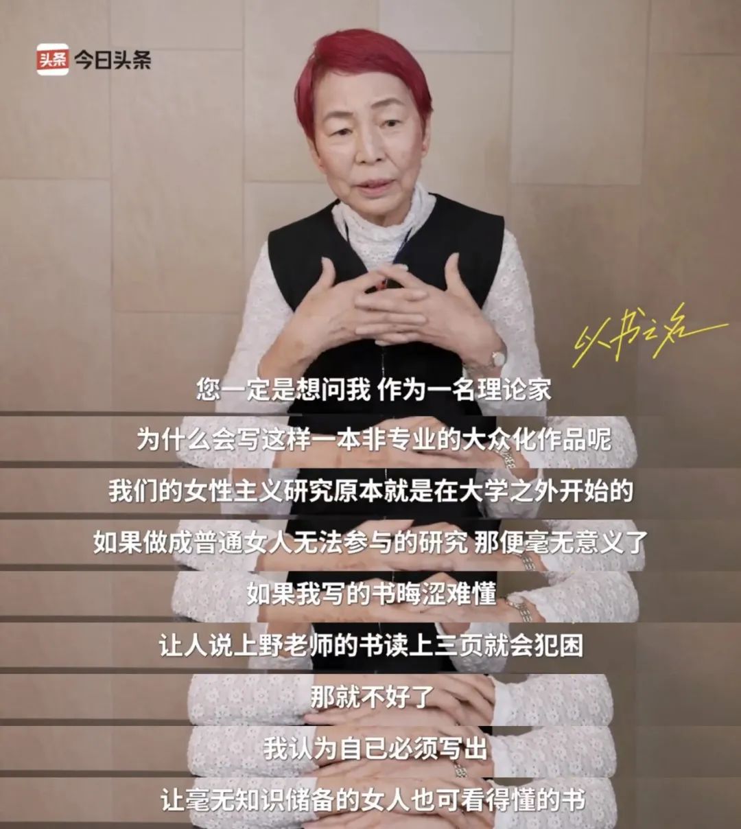 在今年世界讀書日期間,今日頭條策劃“以書之名”活動,推出微紀錄片《我將書本隨身攜帶》,併發起一系列獨家對談,希望以優質內容回應時代關切。上野千鶴子、許倬雲、雙雪濤、餘世存等作家和學者陸續加入,在一次次的深度交談、觀點碰撞中,共同探討當下年輕人的普遍困境,為其“答疑解惑”。