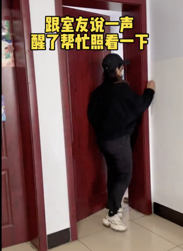 出門前,還拜託“室友”照看正在睡覺的小女兒。