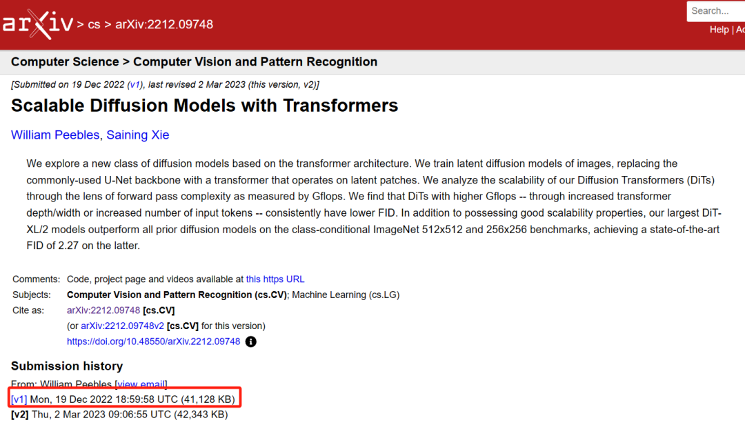 就在清華小分隊提交論文的兩個月後, UC 伯克利也在預印平台 ArXiv 上提交他們的論文了,一樣説要把 Transformers 揉在擴散模型裏面,只不過名字起的更直白了點,叫DiT( Diffusion Transformers )。