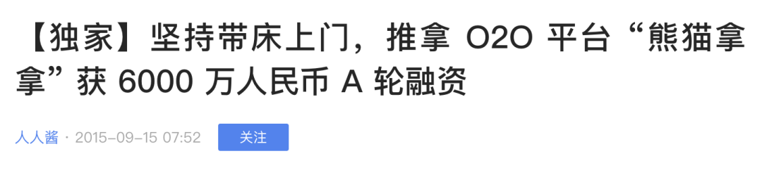 比如説2015年,一家叫做“熊貓拿拿”的按摩O2O平台,就拿到了6000萬元人民幣的A輪融資。