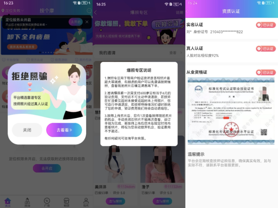 還有其他的按摩品牌,直接將“技師照片與真人相符”作為賣點。