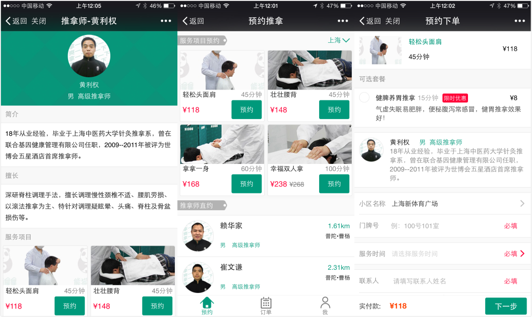 在北京每天業務量是幾百單,自己也手握50多名推拿師。