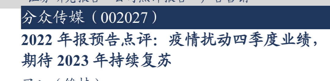 比方説行業龍頭分眾傳媒,2022年第四季度歸母淨利潤6.4-7.2億元,同比下滑61.0%-56.1%。