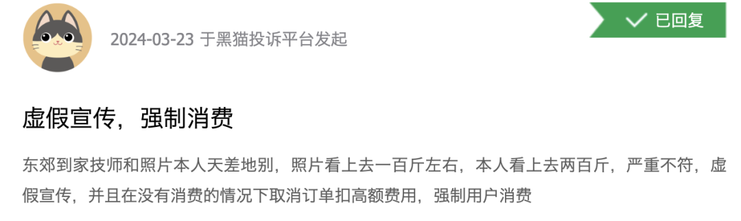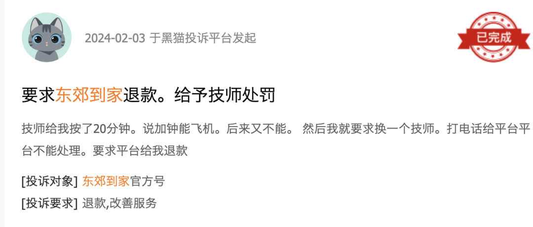 結果就是,我們可以在黑貓投訴上,看到各種各樣對東郊到家的口誅筆伐。