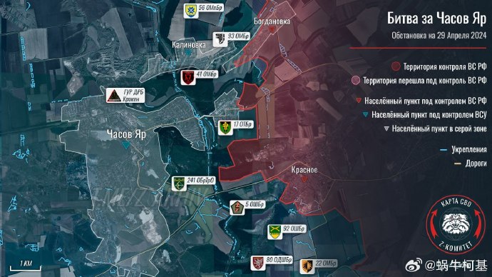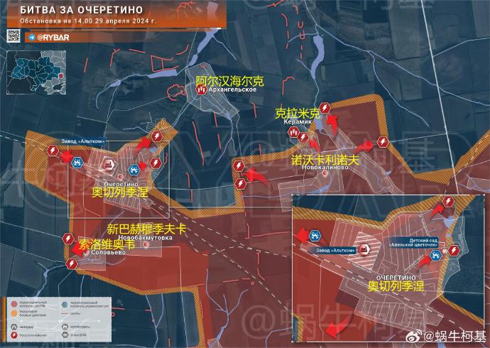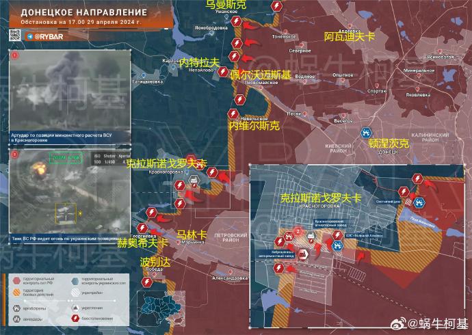❗️🇷🇺🇺🇦 截至 2024 年 4 月 29 日 17 點頓涅茨克以西情況