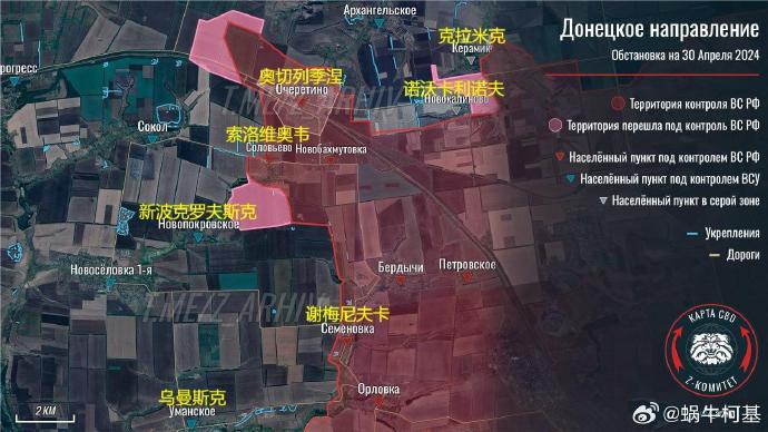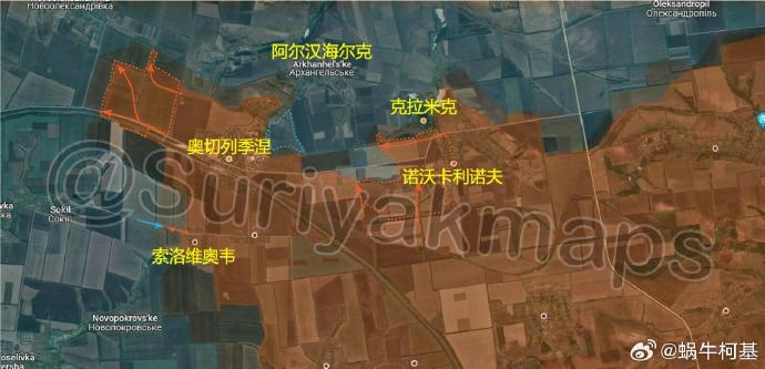 ▪️同時,俄軍對索洛維奧韋剩餘陣地的攻擊完成,之後俄羅斯軍隊可能會向西推進到索基爾村,並向南推進到新波克羅夫斯克一線。