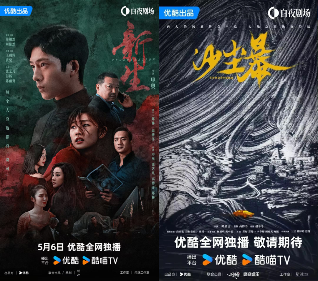 從內容上來看,優酷的白夜劇場也並不拘泥於少年的成長和女性的困境,有多種具備社會討論度的片單,聚焦打造社會懸疑劇情。張藝謀擔任監製,黃景瑜、王子奇主演的《雪迷宮》,在尋情與法的紛爭中展示出正義和人性的較量;井柏然和周依然主演的《新生》展現出都市男女的慾念浮沉;曹保平監製,郭麒麟、吳鎮宇飾演的《邊水往事》於異域秘境開展奇遇冒險;高羣書監製、趙冬苓編劇,段奕宏主演的《沙塵暴》探索了拐賣人口的人性掙扎。
