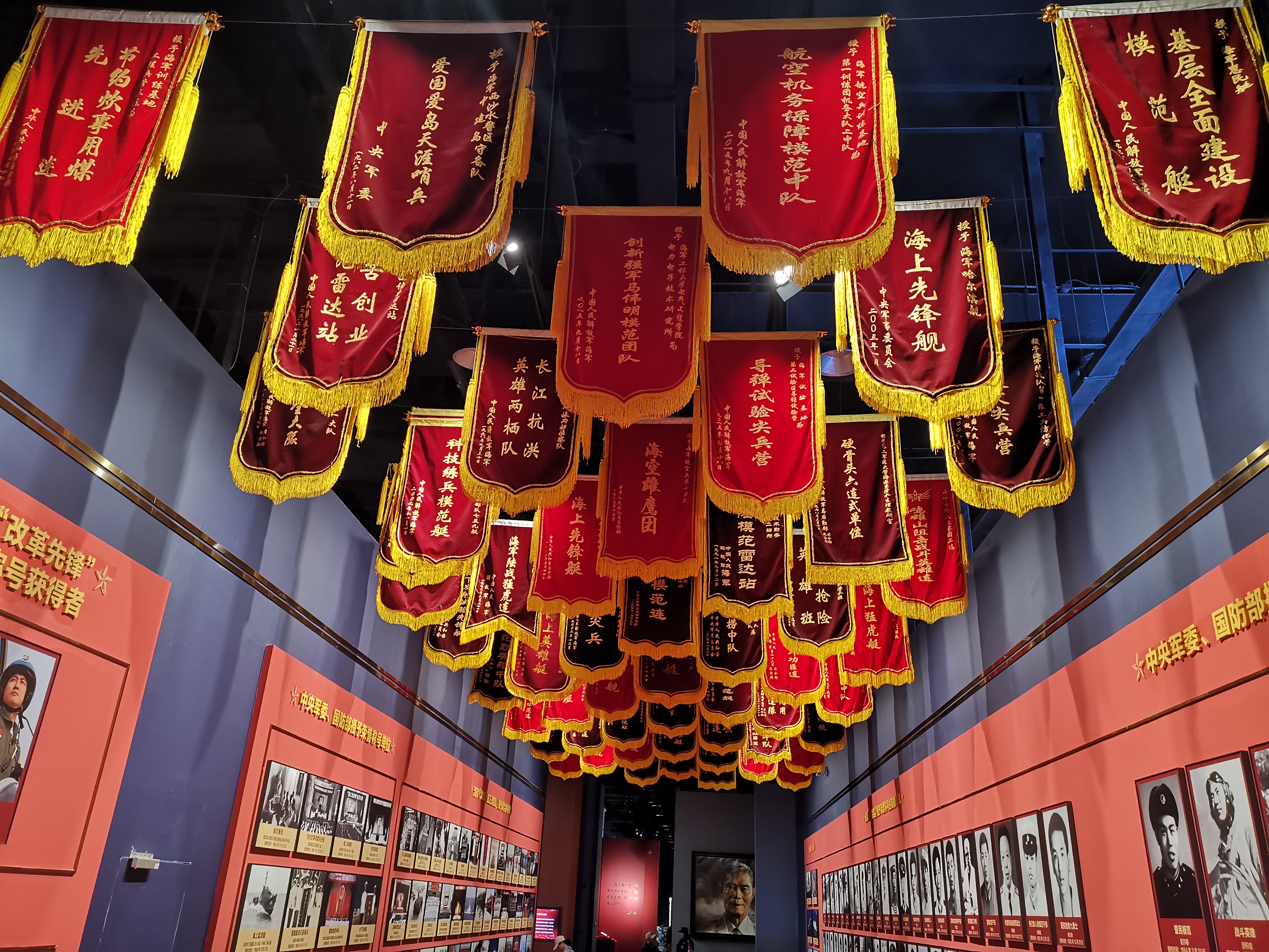 海軍博物館的第四展廳裏沒有什麼值得一看的陳列,只有一間房,鐫刻着建國以來犧牲的每一位海軍烈士,以及一條路,懸掛着海軍部隊所獲得的每一項表彰和榮譽稱號。這也是海軍博物館室內展覽的出口。