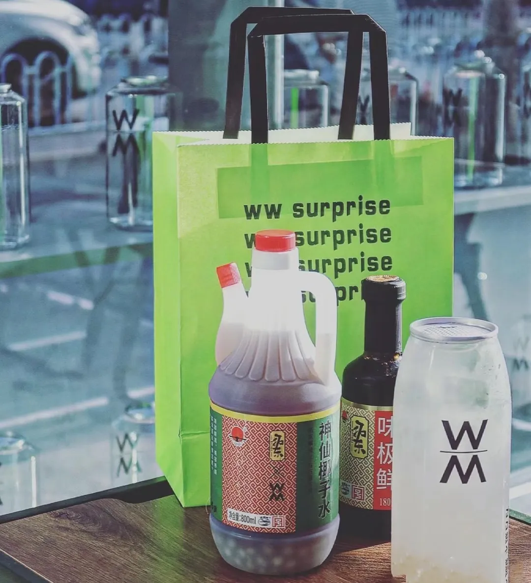 比如黑酉椰子水,和本地百年品牌拓東醬油聯名,不僅添加了真醬油,還定製了醬油瓶包裝,一上市就引發了打卡熱潮,被網友戲稱為“醬油事件”。