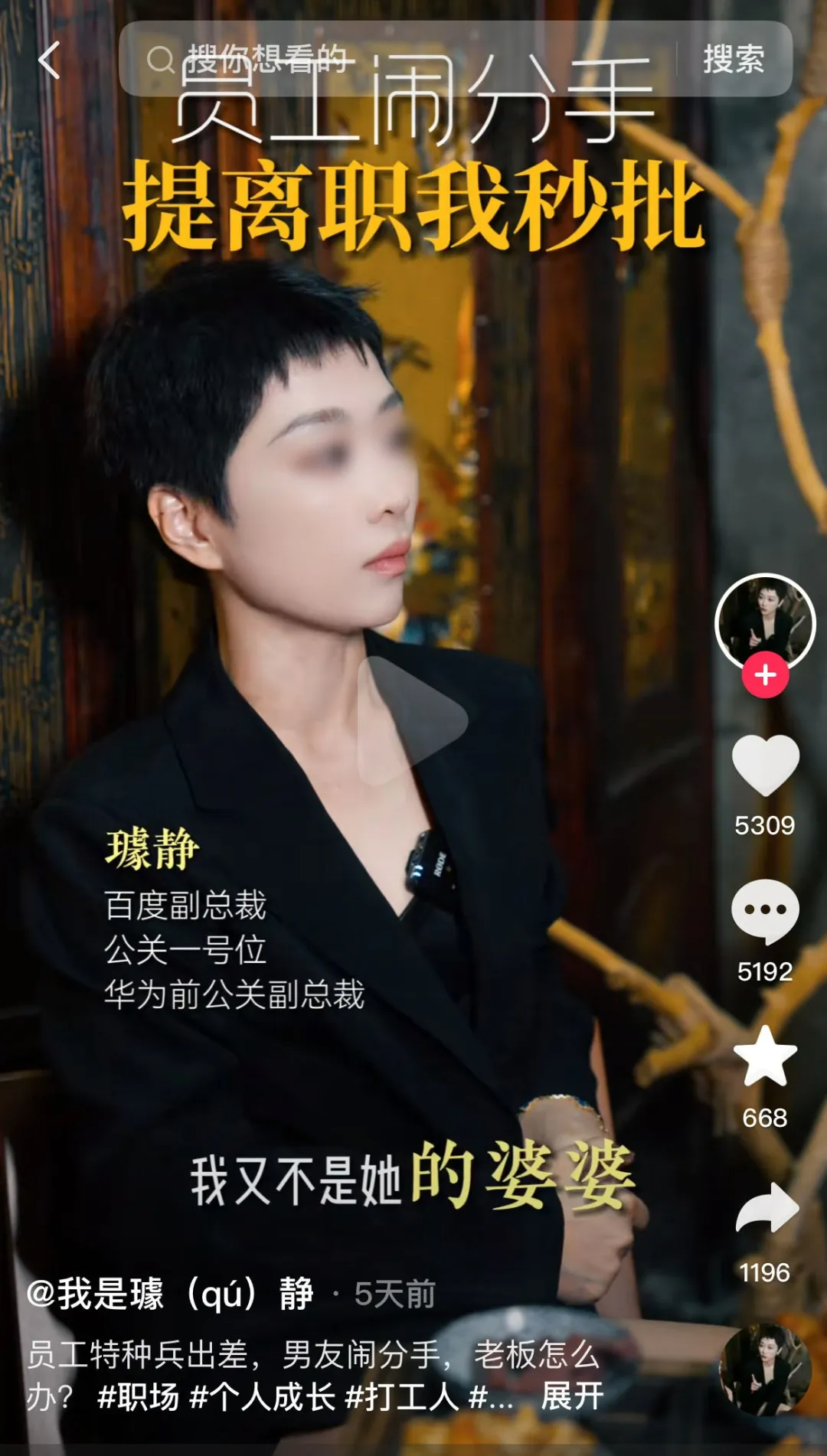 比如在員工鬧分手離職的話題上,她就態度鮮明,直言“我為什麼要考慮她的家庭,我又不是她的婆婆”。