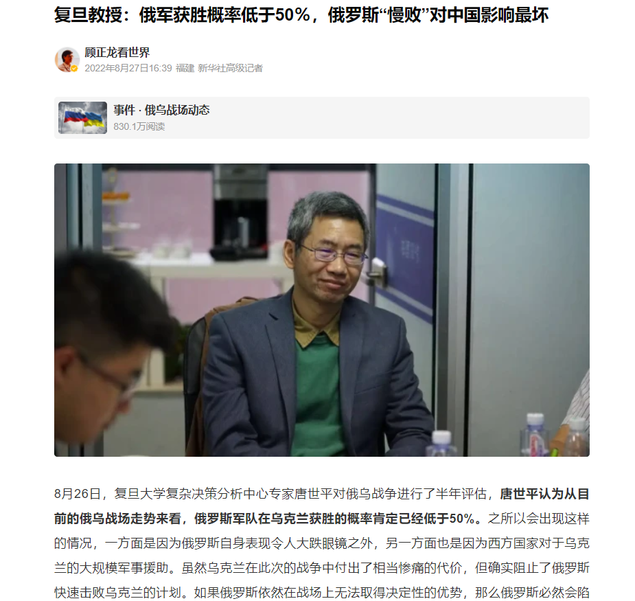 而當時復旦大學另外一位學者唐世平教授則明確提出,俄羅斯一定會出兵。