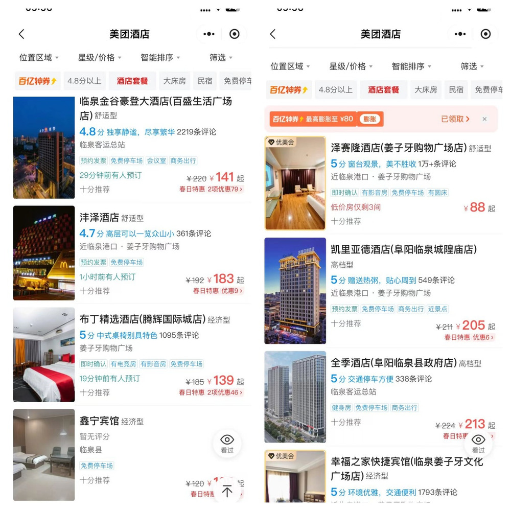 但餐飲和住宿作為旅遊消費支出大頭,縣城因房租和人力成本相對較低,疊加美團、抖音為爭搶縣城市場普遍採用低價策略,縣城中的酒店和餐飲價格優勢明顯。