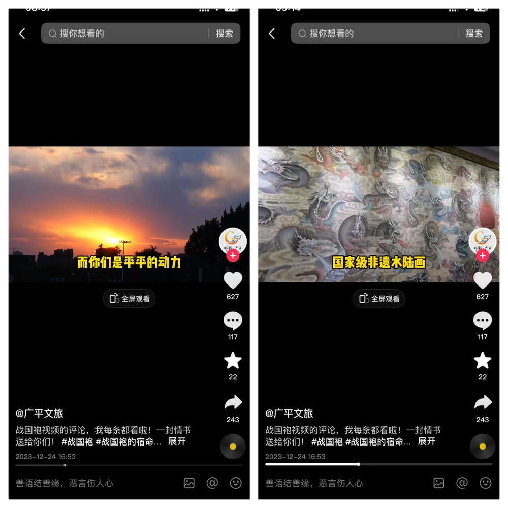 如河北廣平縣文旅官抖曾以書信的方式宣傳本地旅遊文化資源,這讓在外漂泊的遊子感受來自家鄉關愛的同時,也讓外地遊客感受到廣平縣的魅力。