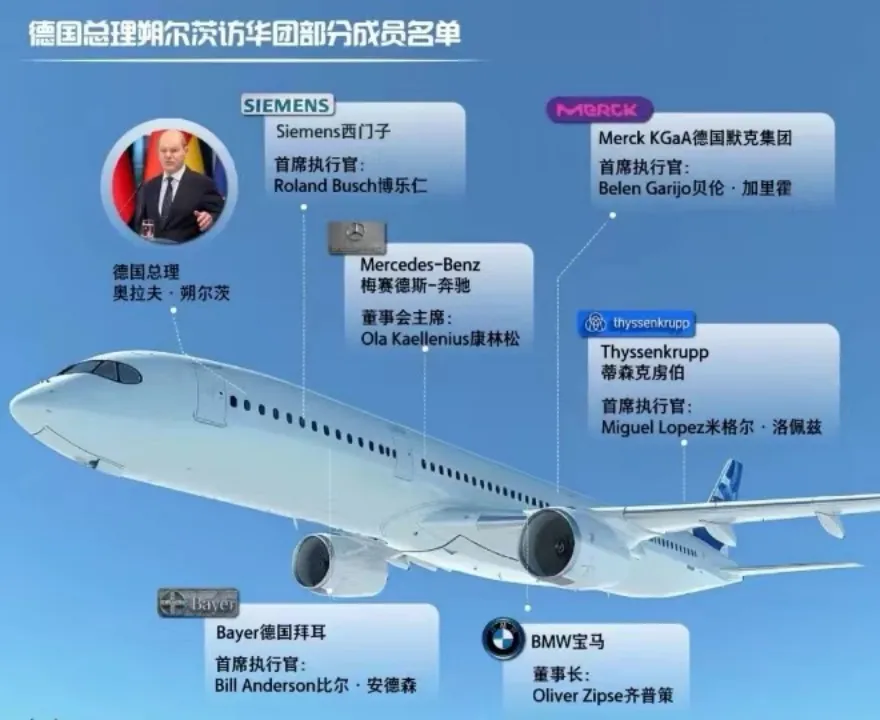 出席陣容也不可謂不高,隨同朔爾茨來訪的還有德國環境、農業、交通部等三位內閣部長,以及西門子、默克、拜耳、寶馬、奔馳等一眾商界領袖。