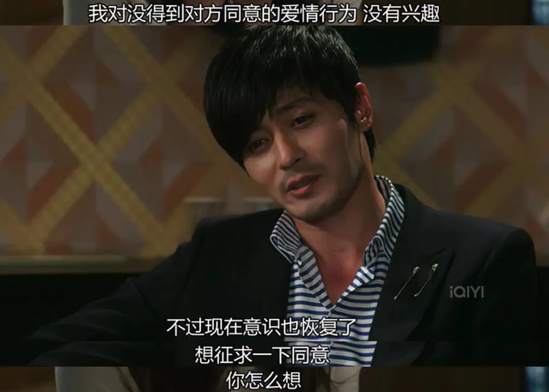 不同於葉晗這類常規自戀型霸總,金道振自詡獨身主義者,但他的感情觀説白了就是,只要性、不敢愛的濫情。