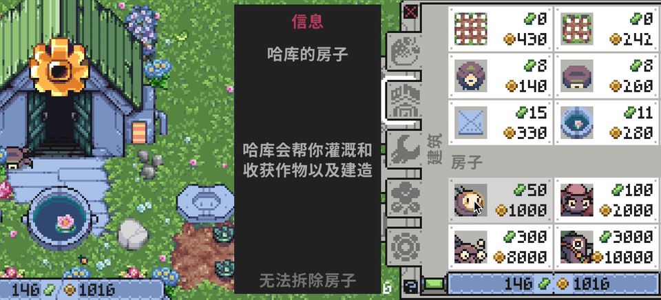 建造一個商店,就可以購買各種花草飾品,狠狠裝扮下家園。