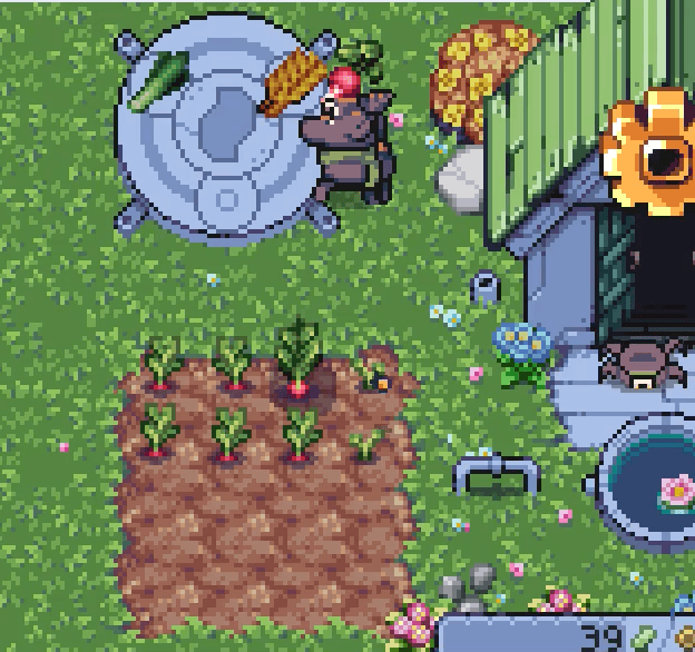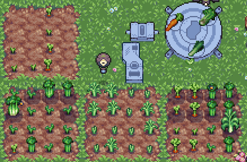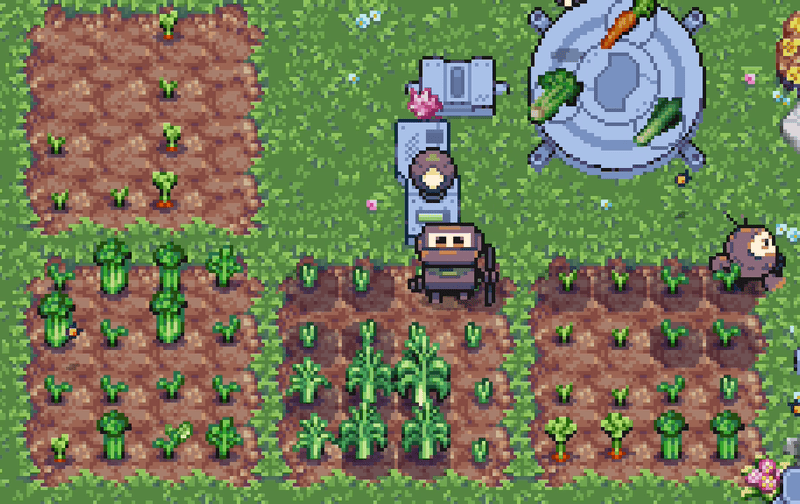 你想想,工作時看着像素風的農場,金色的小麥,黃色的胡蘿蔔,綠色的捲心菜,還有一堆可愛的機器人和動物在幫你幹活。
