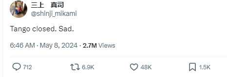 作為Tango Gameworks的創始人,在去年退休的三上真司,對此也只能留下一句意味深長的“Sad”。