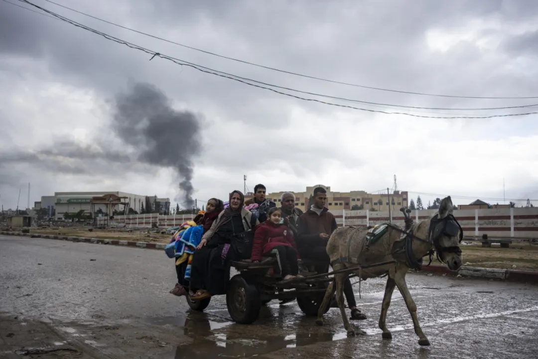 2024年1月,以色列發動地面和空中攻勢後,巴勒斯坦人逃離加沙南部的汗尤尼斯市。(圖源:美聯社)