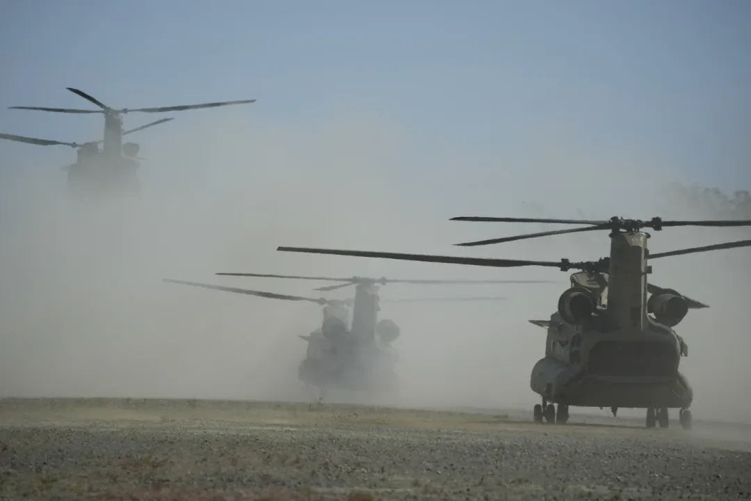 美軍士兵準備登上美軍CH-47戰機(圖源:美聯社)