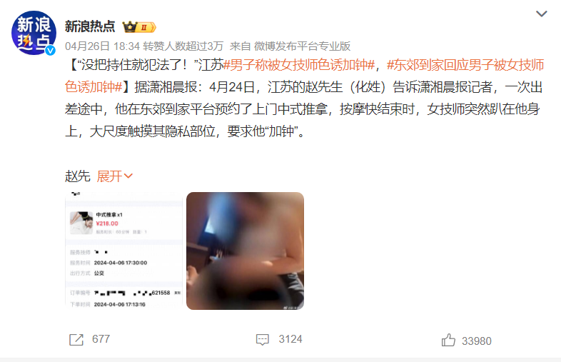這就不得不提到前段時間,在東郊到家剛剛動了衝擊上市的念頭時,就被一位網友爆出,東郊到家某技師上門時因為想加鍾,在自己身上“扭動”。這似乎又給了輿論對其涉嫌“擦邊”的詬病,但即便輿論走上了風口浪尖,東郊到家依舊沒有站出來給出明確的答覆。