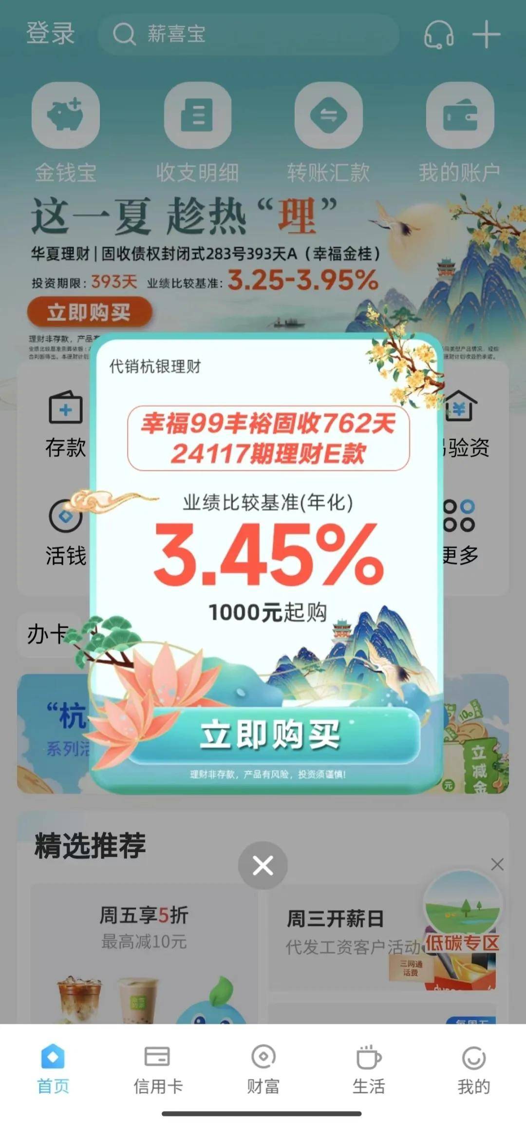 ▲理財產品開始被熱推。圖源/杭州銀行APP