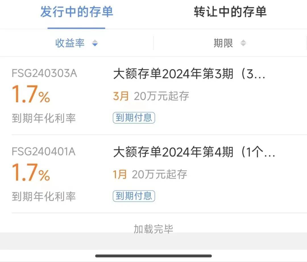 城商行中,明星銀行寧波銀行APP顯示,除了三個正在轉讓的大額存單,沒有大額存單在售;南京銀行目前只有1年期和2年期的2款大額存單在售。
