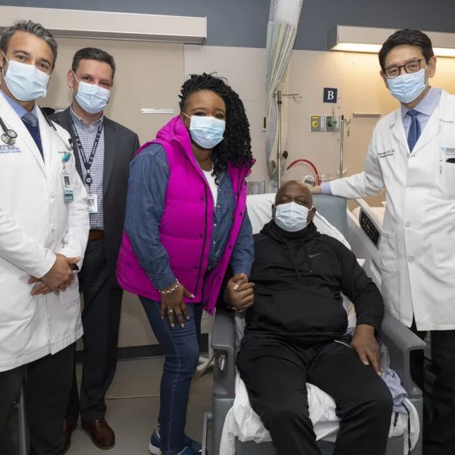 2024年3月的豬腎活體移植術後,患者理查德·斯萊曼(Richard Slayman,右二)與手術團隊合影。圖源/Massachusetts General Hospital
