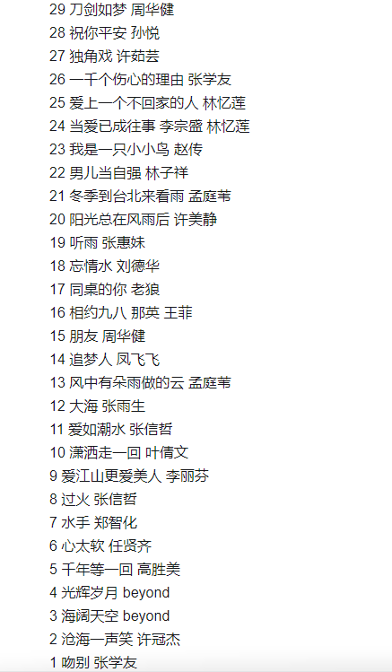 推薦大家到B站看這個華語流行歌曲《十年榜》1990--1999,top前500歌曲,基本上每一首都是精品