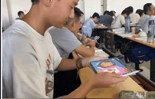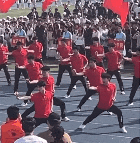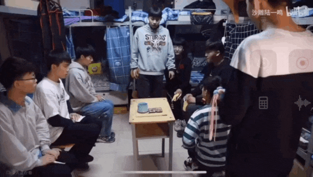 不知道是哪個班的創意,大概是畢業班,有些忐忑在身上,深感生活不易,搞一出師徒蹦迪,喪並快樂。