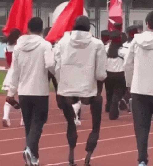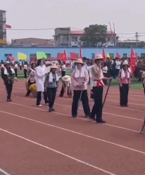 踢正步、舉花環是標準操作,花環的品質決定了名次,一臉嚴肅地放個鴿子就能拿個頭獎。好人誰敢在運動會搞笑啊。