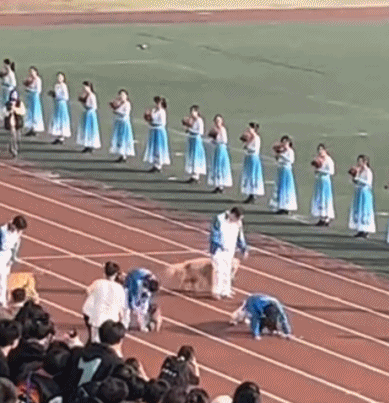 開幕式非要穿漢服跳舞,被大長裙子絆倒在主席台前。