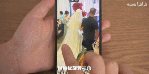 回到場景和回看視頻,是兩個完全不同的體驗。B 站 up 主 @ 橙紅 Iris 曾經帶着 Insta360 X3 去拍攝好友的婚禮,主鏡頭全程對準了作為主角新人夫婦。但在後期整理素材時,當素材轉向鏡頭的另一面,才發現當所有人的目標聚焦在新娘入場的重要一刻時,台下的母親正在暗自抹淚。