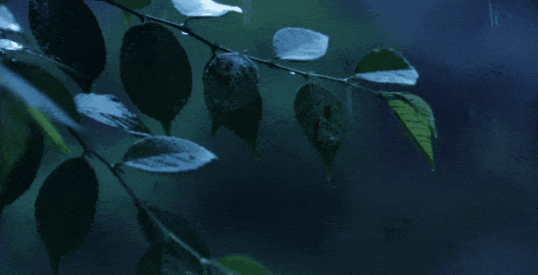 注意這裏的鏡頭——濺上鮮血的綠葉,與雨水裏流淌的紅色形成鮮明對比,體現生命於方寸間的流逝。