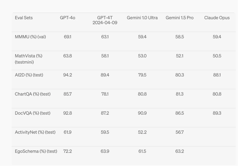 視覺理解評估 GPT-4o 在視覺感知基準上實現了最先進的性能。