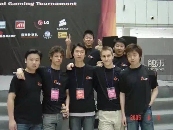 2005年,邱樂(左二)和他的“老年團”在ACON5總決賽現場