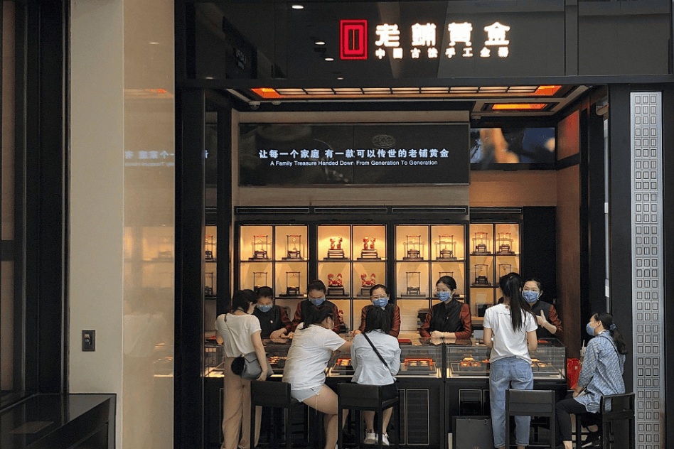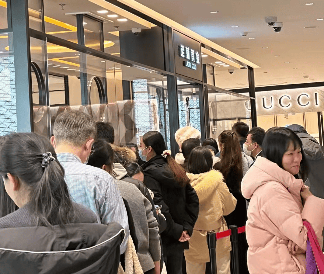 在高端商場,老鋪黃金門口的排隊情況讓身後的GUCCI都遜色三份。